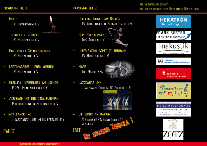 Hier der Programmflyer zur Turn Gala (Änderungen vorbehalten)